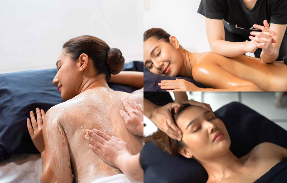 Duration: Scrub (60 mins) + Thai Oil Massage (60 mins) + Facial Acupressure and Head Massage (60 mins)